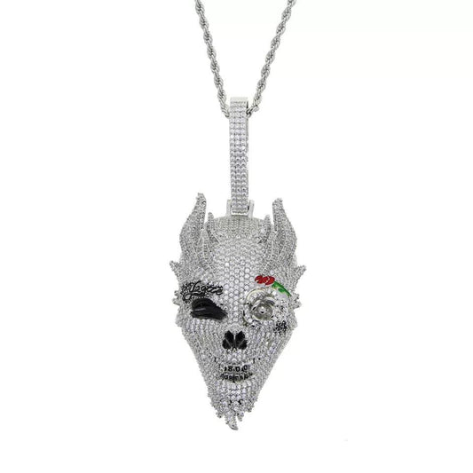 Rock Punk Men CZ Big 3D Shaped Skull Necklace