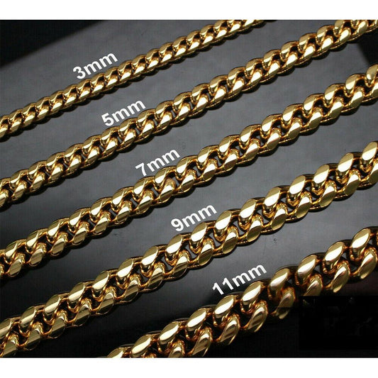 Stainless Steel Cuban Curb Chain 16-30" Mens Necklace 3/5/7/9/11mm