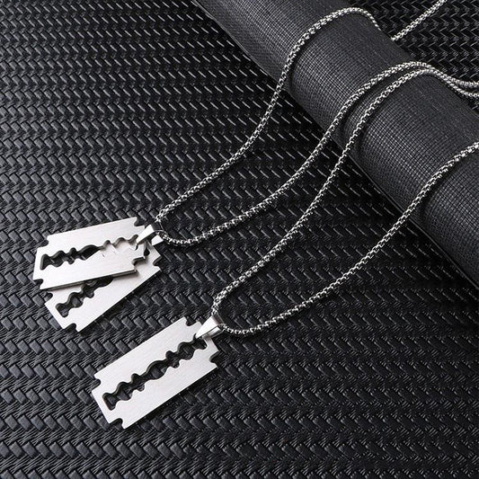 Stainless Steel Razor Blades Pendant Necklaces