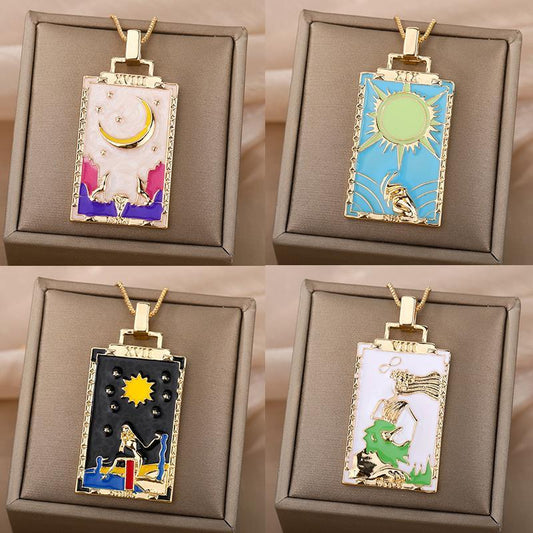 Square Tarot Cards Necklaces for Women