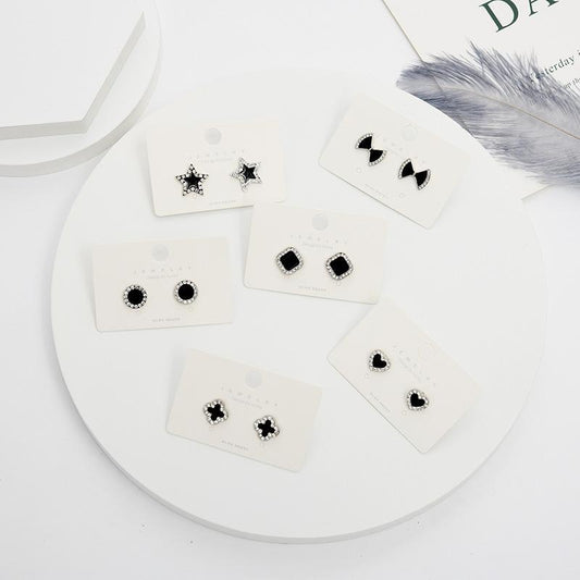 Silver Pin and Diamond Clover Stud Earrings