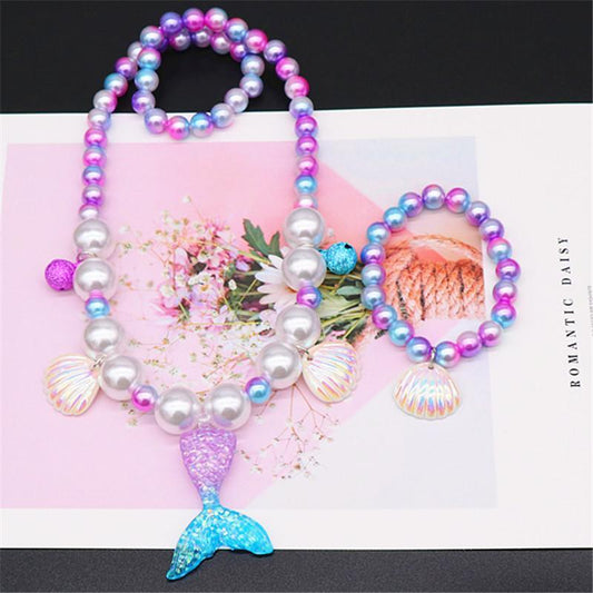 Children's Beauty Fishtail Pearl Necklace Bracelet Ring Earring Set