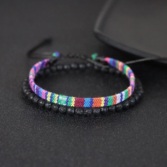 Bohemian Handmade Lava Stone Ethnic Rope Bracelet