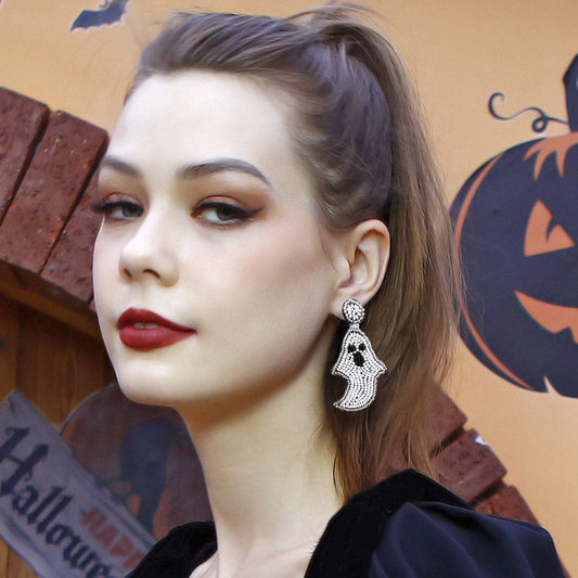 Handmade Woven Ghost Halloween Earrings