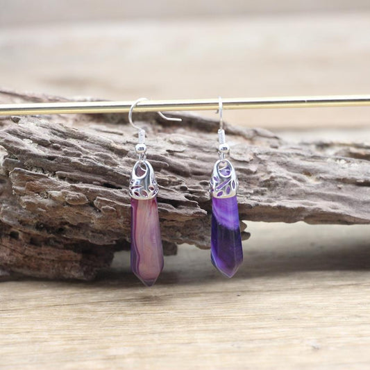 Handmade Natural Stone Hexagonal Quartz Hook Earring