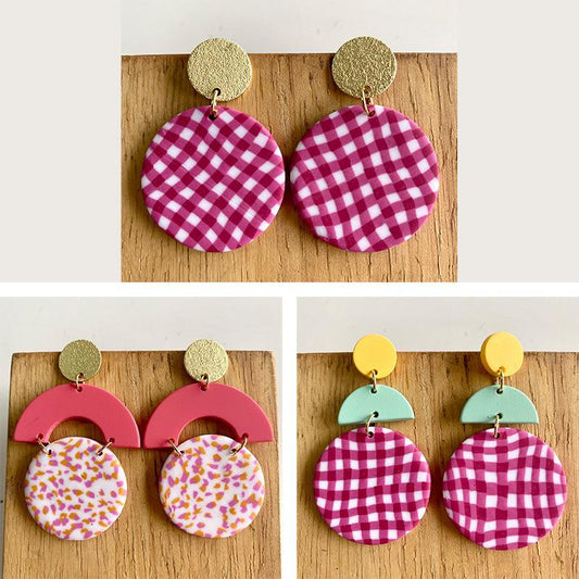 Handmade Soft Pottery Striped Polymer Clay Earrings
